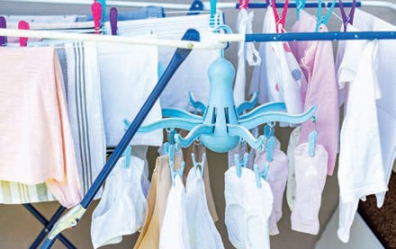 Latem balkony i tarasy stają się suszarniami. Oczywiście możemy rozciągnąć sznurki między krańcami balustrady, jednak takie rozwiązanie nie jest zbyt estetyczne i praktyczne – linki zabierają przestrzeń, nawet gdy nic na nich nie wisi. Na balkonie czy tarasie sprawdzą się składane suszarki typu wieża. Umożliwiają maksymalne wykorzystanie przestrzeni, są pojemne, a przy tym zajmują niewiele miejsca. Ponadto dzięki regulowanym półkom bez problemu wysuszymy ręczniki, pościel czy koszule. Niektóre modele wyposażone są np. w wieszaki na uchwyty. Co ważne, gdy zapowiadają silny wiatr, unikajmy wieszania prania na tych suszarkach, ponieważ podmuchy mogą je przewrócić. Jeśli nasz balkon jest wyjątkowo mały – a takich nie brakuje – to dobrym wyborem może okazać się suszarka wieszana na poręczy lub mocowana do ściany. Po sezonie możemy ją zdemontować i zabezpieczyć przed zabrudzeniami oraz korozją.