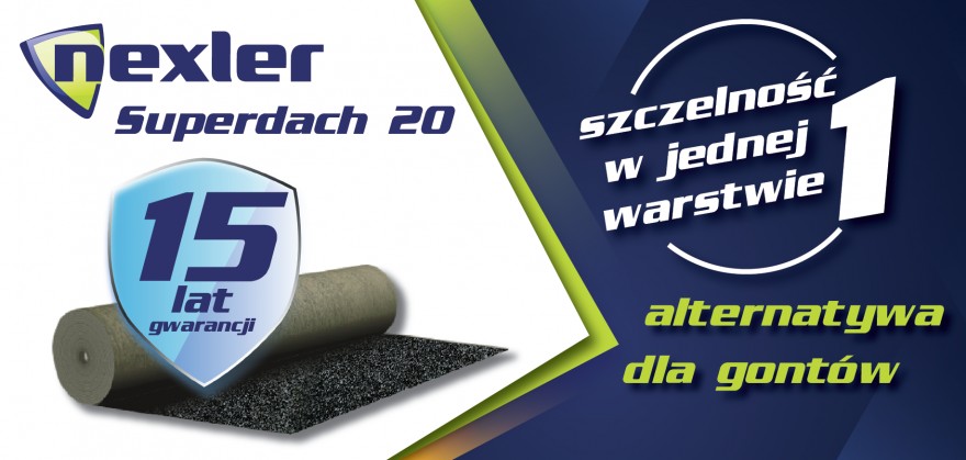NEXLER Superdach 20 posiada pasek brzegowy, umożliwiający łatwy montaż łącznikami mechanicznymi i klejem bitumicznym.Przy wyborze pokrycia dachu skośnego warto postawić na membranę NEXLER Superdach 20. Jej unikalna budowa i bardzo wysokie parametry fizyko-chemiczne pozwalają wykonać pokrycie dachu w jednej warstwie uzyskując 15-letnią gwarancją producenta.