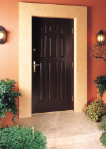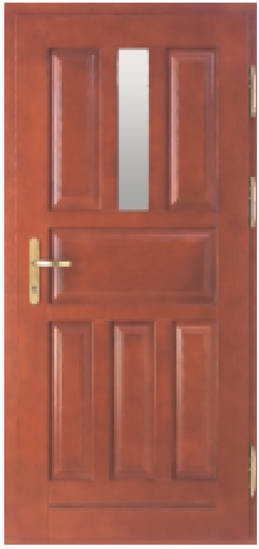 Ten rodzaj wykoñczenia gwarantuje nie tylko bardzo dużą wytrzymałość mechaniczną, ale również odporność na działanie niekorzystnych warunków atmosferycznych, bez konieczności okresowej konserwacji powierzchni. W droższych modelach drzwi z włókna szklanego, faktura zewnętrzna jest niemal identyczna z fakturą naturalnego drewna. Drzwi zewnętrzne wykonane mogą być również z litego dębu klejonego warstwowo, ocieplanego na przewężeniach pianką uszczelniającą. Wyposażone są również w zamek listwowy i dwie wkładki patentowe.