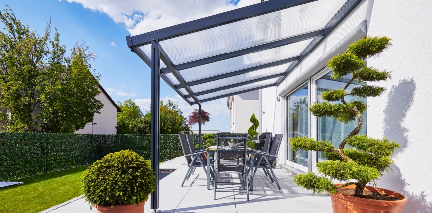 Również z profili aluminiowych z 8, 10 lub 16 mm (w wersji PREMIUM) wypełnieniem z poliwęglanu, akrylu bądź szkła (7 dostępnych wariantów), wykonane w nowoczesnym wzornictwie i przygotowane tak, aby można je było łatwo i samodzielnie zamontować. Dostępne są w rozmiarach 3, 4, 5 m głębokości i do 10 m szerokości. Kolory antracytowy i biały.