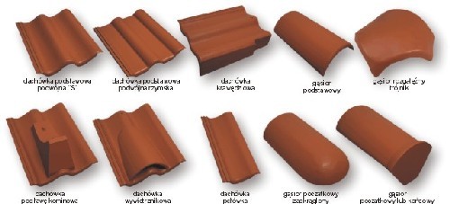 kalenicowe; kalenicowe krawędziowe lewe i prawe oraz dachówki z
