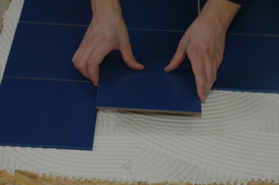 Wielkość powierzchni pokrytej zaprawą powinna być dostosowana do możliwości ułożenia płytek, aby nie został przekroczony czas otwartego schnięcia zaprawy klejącej. Można go kontrolować dotykając zaprawy palcem; jeśli do niego już nie przylega, to czas otwartego schnięcia został przekroczony i zaprawę taką należy usunąć z podłoża i nanieść nową. Płytki przykleja się w taki sposób, że kolejną przykłada się jak najbliżej poprzedniej i następnie przesuwa tak, aby powstała spoina odpowiedniej szerokości.