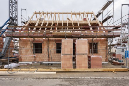 Gdy na plac budowy przyjedzie większa ilość zamówionego przez nas materiału w jednym czasie, wtedy będzie on zajmował 2-3 razy więcej miejsca, niż gdyby docierały one na budowę transzami – trzeba więc przewidzieć odpowiednio dużo miejsca na ich składowanie. Najwięcej miejsca potrzeba na składowanie materiałów potrzebnych na wzniesienie stanu surowego. Jeśli jednak materiały murowe pojawią się dopiero po wzniesieniu stanu zerowego, palety z pustakami lub bloczkami umieszcza się na fundamentach – jest to rozwiązanie najbardziej ekonomiczne z punktu widzenie miejsca na działce, ale też najbardziej bezpieczne dla materiałów i najwygodniejsze dla ekipy. Palety najlepiej ustawiać pojedynczo i równomiernie rozmieścić na fundamentach – ułatwi to wykonawcom pracę. Więcej problemów z przechowywaniem materiałów pojawia się podczas budowy dachu. Drewniane elementy więźby zajmują dużo miejsca – jest to zazwyczaj kilkanaście metrów sześciennych drewna, a ponadto drewno jest bardziej narażone na zniszczenia i dłuższe jego składowanie może wymagać np. odpowiedniego zadaszenia. Dlatego więźbę na plac budowy należy dostarczyć dopiero, gdy kończy się murowanie ścian szczytowych. Szczególnego zabezpieczenia wymagają również niektóre rodzaje pokrycia dachowego, np. blachodachówka.