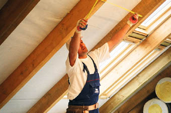 Przed przystąpieniem do izolowania dokonujemy pomiaru szerokości pomiędzy krokwiami (zdj.1), następnie rozcinamy opakowanie foliowe i rozwijamy rolkę wełny.