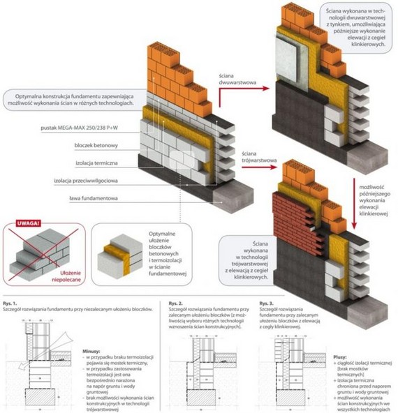 Ponadto warstwa zewnętrzna bloczków ułożonych na sztorc zabezpiecza ścfundamentową oraz izolację termiczną przed naporem gruntu i wody gruntowej.Warto zaznaczyć, że rozwiązanie to wiąże się z takim samym nakładem pracy i kosztów, jak inne sposoby przygotowania fundamentu. Zyskujemy jednak dodatkową możliwość wyboru różnych technologii wznoszenia ścian nośnych, co w wielu przypadkach okazuje się niezmiernie ważnym aspektem.