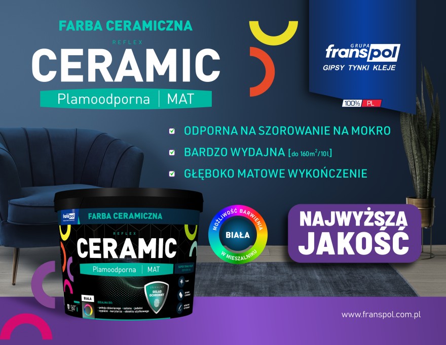 A co w przypadku plam? Najpewniejszym sposobem zabezpieczenia powierzchni jest farba plamoodporna, np. Reflex CERAMIC firmy Franspol. Jest odporna na plamy od kawy, sosów oraz te będące efektem dziecięcej fantazji. Dzięki odpowiedniej mikrostrukturze powierzchni plamy nie wnikają do wnętrza powłoki. Zastosowane w farbie wypełniacze i spoiwa zapobiegają wybłyszczaniu powłoki oraz zwiększają jej odporność na szorowanie na mokro. Dodatek krzemionki koloidalnej zapewnia dobrą przyczepność do podłoży mineralnych i paroprzepuszczalność.