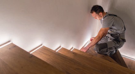 W długich korytarzach, a także na schodach stosuje się łączniki schodowe. Można je poznać po tym, że jeden z klawiszy jest najczęściej wyróżniony graficznym symbolem schodów. Kupuje się je parami, dzięki czemu można włączać i wyłączać światło z dwóch różnych miejsc. Jeden należy zaplanować na ścianie na początku biegu schodów lub korytarza, a drugi na ich końcu. Wygodzie sterowania światłem na długich domowych traktach służą także łączniki krzyżowe. Użyjemy ich również, jeśli schody łączą więcej niż dwie kondygnacje. Łączniki tego rodzaju powinny być usytuowane pomiędzy przełącznikami schodowymi. Poznamy je po umieszczonym na stronie zewnętrznej piktogramie w postaci podwójnego krzyżyka. Dla domorosłego elektryka podłączenie łącznika schodowego będzie łatwiejsze, jeśli wykorzysta on schematy połączeń umieszczone na łącznikach – istotne jest więc, by przed ich zakupem sprawdzić, czy są dla nas czytelne. Przed montażem należy wyłączyć zasilanie energii elektrycznej. Uwaga! Nawet mały błąd może skutkować co najmniej porażeniem, dlatego często bezpieczniej jest podłączenie łącznika schodowego zlecić elektrykowi. Montując łączniki, trzeba pamiętać, że muszą być połączone ze sobą dwoma przewodami elektrycznymi. Istotne jest również, by pierwszy łącznik został doprowadzony do fazy za pomocą przewodu oznaczonego literą L, kabel powinien mieć kolor brązowy albo czarny. Drugi łącznik należy połączyć z wybranym przez nas źródłem światła. Łączą je niebieski neutralny przewód oznaczony literą N oraz zielony ochronny z symbolem PE. Kupując łączniki, zwróćmy uwagę na napięcie, do jakiego jest przystosowany dany model. W polskich łącznikach schodowych wynosi ono 250 V.