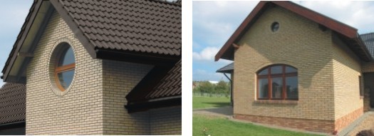 W przypadku obramień otworów okiennych i drzwiowych można to uzyskać poprzez zaakcentowanie konstrukcji kolorem kontrastowym, a także wykorzystaniem cegieł kształtowych.