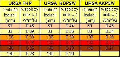Wymóg dla ściany zewnętrznej wielowarstwowej: zgodnie z przepisami współczynnik Uk ≤ 0,30 W/m2 K) URSA FKP, URSA KDP2/V, URSA AKP3/V