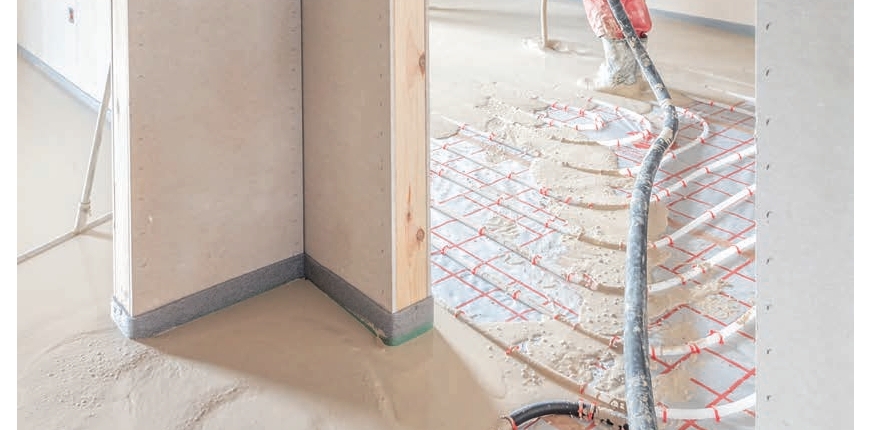 Wylewka na ogrzewaniu podłogowym jest naprzemiennie ogrzewana i wychładzana. Maksymalna temperatura wody zasilającej przewody podłogówki wynosi 55°C. Dlatego podkład musi być odpowiednio wytrzymały, aby w takich warunkach nie uległ spękaniu. Oczywiście powinien dobrze przewodzić ciepło. Najlepszym rozwiązaniem w tym przypadku są wylewki anhydrytowe lub cementowe. Dużym atutem podkładu anhydrytowego jest lepsze przewodnictwo ciepła i wysokie właściwości termoizolacyjne. Czas nagrzewania instalacji ogrzewania podłogowego w przypadku wylewki anhydrytowej jest prawie dwukrotnie krótszy od standardowego podkładu cementowego. Ponadto jastrychy anhydrytowe sprawdzą się, gdy mamy ograniczoną wysokość warstw podłogowych. Gdy zależy nam na ograniczeniu kosztów, dobrym wyborem będą zaprawy cementowe.